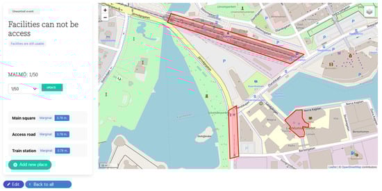 The municipalities filled these sections on the website during, and between, the workshops following the workshop instructions. The first step was adding the general information, followed by adding success criteria and unwanted events. From the unwanted events, the vulnerable locations were identified and marked in the geographical interface. Once these sections were filled, the municipalities could start the work with identifying possible CCA measures and pathways. The created data are saved in a relational database, which means that the data are interconnected, allowing for queries such as searching for all vulnerable locations connected to a certain unwanted event or for vulnerable locations that are not covered by a certain CCA measure.