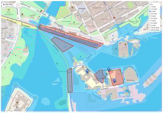 The web application translated the existing method of working for RDM in a digital format and allows the municipalities to identify, create, and work with vulnerable locations for planning and adaptation strategy. The application also added a map layer showing the extent of sea level rise from 1 to 5 m in half-metre intervals, which was created by the Swedish Civil Contingencies Agency.