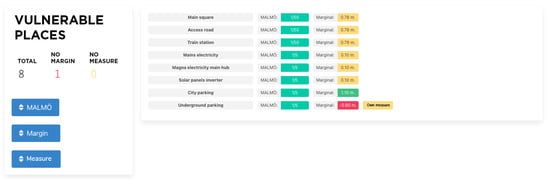 Figure 4. View presenting all vulnerable places to allow for sorting and analysis of places that need measures (translated dummy account).- ○