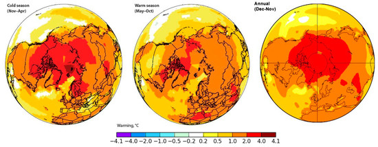 - Zhilina, I.Y. Warming in the Arctic: Opportunities and Risks. Econ. Soc. Probl. Russ. 2021, 1, 45. Available online: https://cyberleninka.ru/article/n/poteplenie-v-arktike-vozmozhnosti-i-riski (accessed on 26 October 2023). [CrossRef]