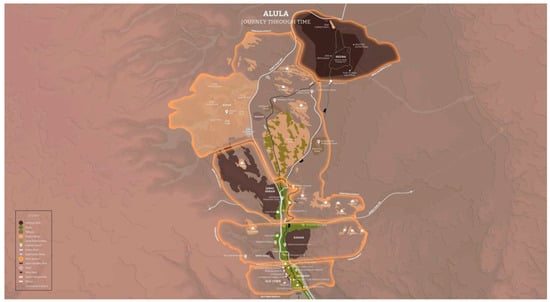 AlUla Master Plan: Journey Through Time (source: https://ucl.rcu.gov.sa/, accessed on 25 January 2024).