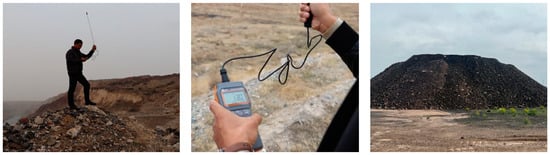 Wind speed measurements in the area of ore dumps in Zhanatas (photos by D. Aliaskarov, Sh. Laiskhanov).