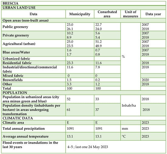 Brescia’s description sheet describing urban land use data and climatic data.