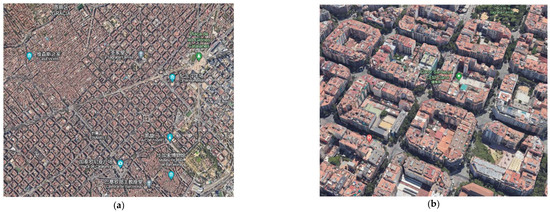 The planning and layout of residential properties in Barcelona. (a) Barcelona Residential Layout Master Plan. (b) Aerial view of Barcelona residential layout.
