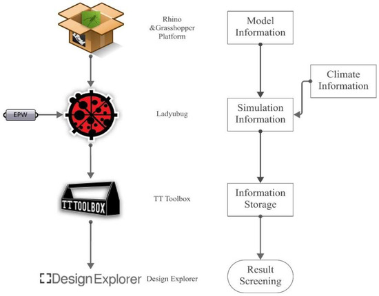 A total of 672 test models were simulated to obtain the optimized layout model of the Barcelona residential area with better sunshine performance and a similar FAR to the northern Chinese cities. The northern Chinese cities’ sunshine standard was used in the test, that is, the effective period of the test was from 8:00 a.m. to 16:00 p.m. on the coldest day. This article used the Ladybug plug-in based on Rhino & Grasshopper’s parametric platform to simulate sunshine, the colibri2.0 plug-in in the TT toolbox to collect data and Design Explorer to classify and screen the data. By setting the screen conditions, optimization and solution of this problem affecting multiple factors can jointly be solved (Figure 9).