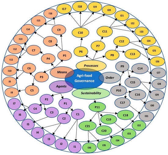 The agri-food governance system has five components—agents, means, processes, order, and sustainability.