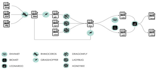 One significant challenge in the workflow revolves around the interoperability process, which is heavily reliant on employing suitable IT tools. By considering the interoperability of their outputs, these results become easily interpretable and translatable across various software platforms (Figure 7). This ensures seamless monitoring across different software environments, including geometric modeling with Rhinoceros, parametric design utilizing Grasshopper and its add-ons, and microclimate simulation using ENVI-met 5.