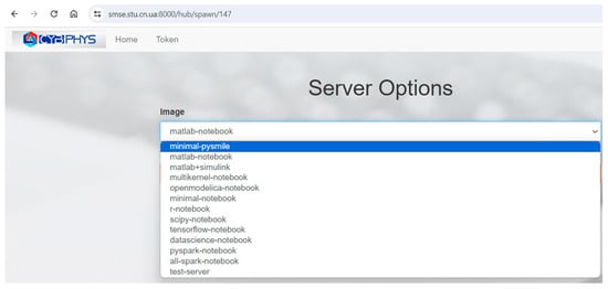 The current implementation of SMSE includes 12 images of virtual servers that support various modeling environments, such as Matlab r2022a (including a variant with Simulink) and OpenModelica 1.22.1, as well as programming Java, R, Octave, Julia (in case of multi-kernel notebook) languages and a whole set of environments for Python with installed libraries. It should be noted that every server on the list supports Python by default, including the minimal-notebook, which is limited to Python only.