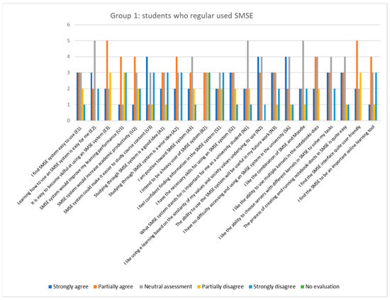 The answers of Group 1 students who regularly used SMSE—histogram of cumulative results.