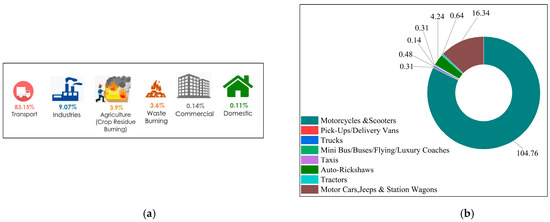 (a) Sectoral contribution of pollutants and (b) vehicular category-wise emissions. Source: Sectoral Emission Inventory of Lahore by Urban Unit.