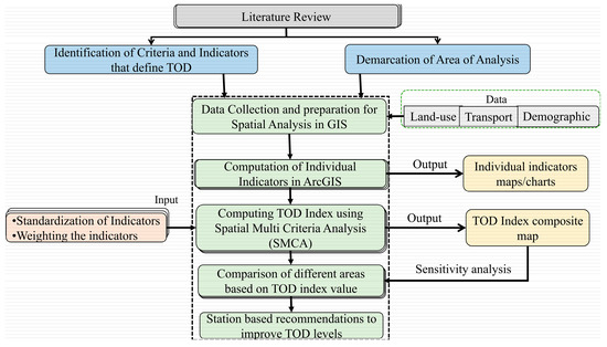 - Applying spatial and non-spatial analytical methods (ArcGIS and SMCA) to obtain the TOD index based on a set of indicators;