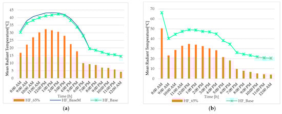 a with respect to HF_BaseM, resulting in a good result in terms of heat mitigation. This is even more evident in the case of the comparison between HF_Base and HF_65% in hot extreme temperature conditions (