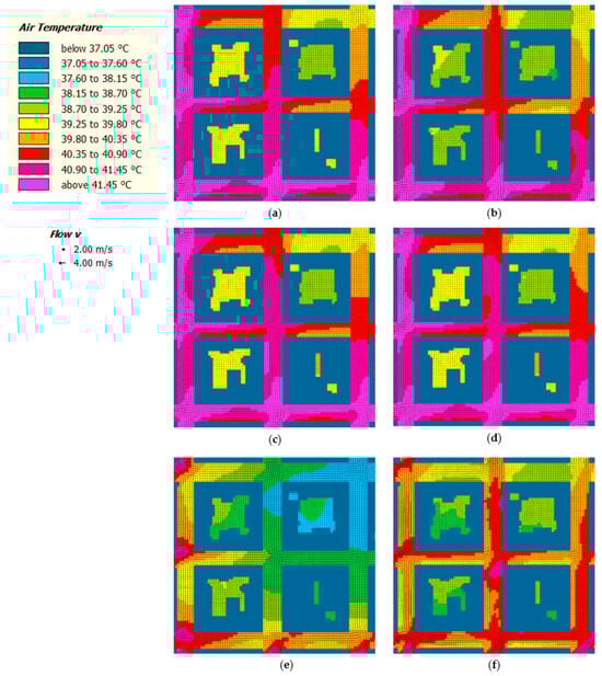 Figure 14). In the maps obtained, the increase in temperature for the HF_BaseM scenario with measured data is evident compared to the HF_Base scenario with climatic data from the weather station. Moreover, the scenario HF_65% achieves a general reduction in T