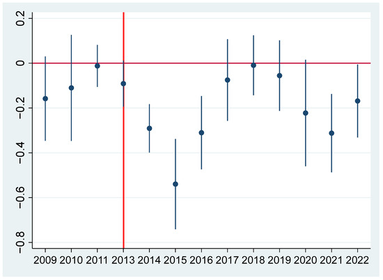 Parallel trend test of corporate market performance. Notes: The red line is the year the policy starts.