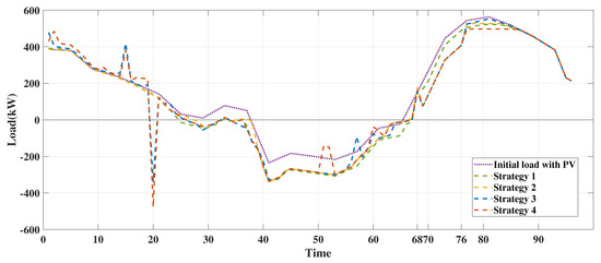 In addition, strategy 3 shows the load demand without considering the demand price. Comparing the peak load reduction under these strategies, it can be seen that the peak load without considering the demand price is only reduced by 2%, while strategy 2 and strategy 4 are reduced by 6% and 11% respectively, which is not conducive to the stability of power grid operation. Therefore, the formulation of a reasonable demand price is necessary.