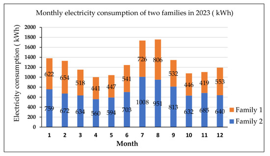 In order to rectify the energy consumption statistics of the created numerical model, the study gathered the real power usage of two dwellingholds in the study building in 2023 (Figure 9). Based on the field survey, the prevailing electricity rate in the area is CNY 0.508/kWh.