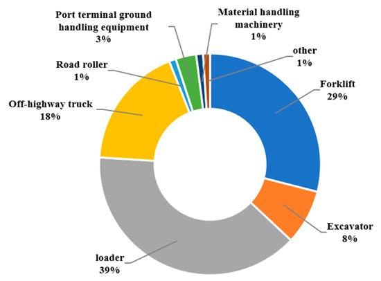 - Gao, C.; You, H.; Ba, Q.; Liang, C. Study on a Non-road Mobile Source Emission Inventory and Scenario Prediction in Northeast China. J. Northeast. Univ. (Nat. Sci.) 2021, 42, 358–366. (In Chinese) [Google Scholar]