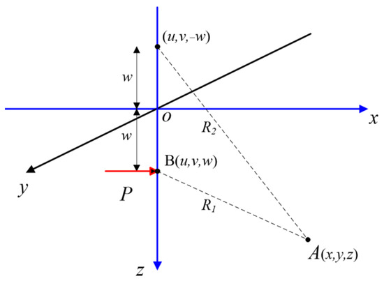 where is the equivalent Poisson’s ratio of the soil layer. Gd is the equivalent shear modulus of the soil layer. x, y, and z represent the coordinates of the displacement calculation point A, and u, v, and l represent the coordinates of the load point B, respectively: , , , , , and .