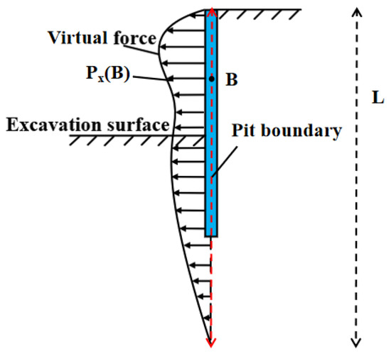 According to the boundary element method, the pit boundary generates the virtual stress field and virtual displacement field corresponding to the soil outside the pit under the influence of the virtual force. When the pit boundary conditions in the virtual displacement field are consistent with the actual pit displacement boundary conditions, it can be considered that the virtual displacement field and virtual force field are generated by the virtual force in response to the boundary effect caused by the pit excavation.
