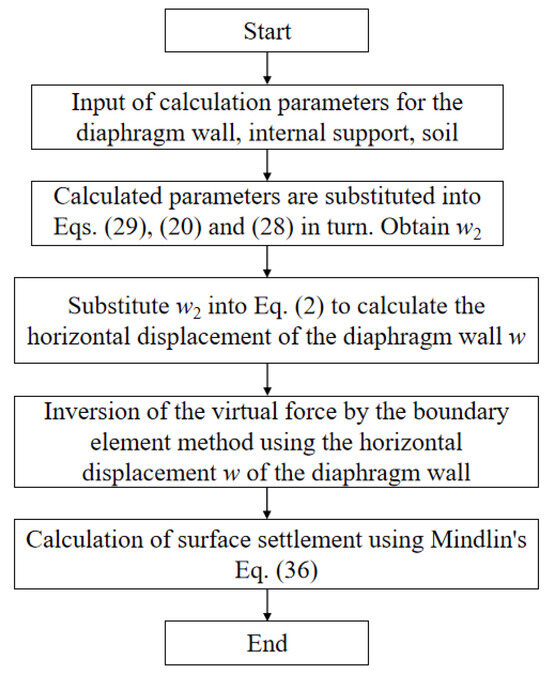 A flowchart for calculating the displacement of the diaphragm wall and surface settlement is shown in Figure 7.