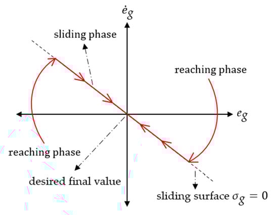 Both standard SMC and FNITSMC designs include two steps. The initial stage is to design the equivalent control based on the sliding surface followed by the second stage, which is a switching control to drive the state trajectory of the plant to the sliding surface. Figure 6 illustrates the different phases in the SMC.