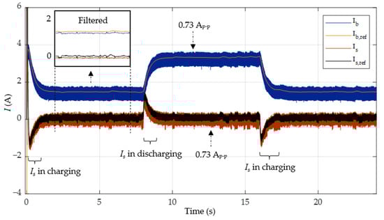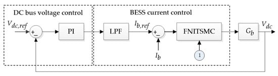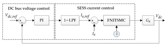 FNITSMC requires reference currents for both the BESS and SESS to track current errors and regulate the power balance of the DC microgrid system. The reference currents in the HESS are obtained using a PI controller combined with an LPF, which divides the overall current into low- and high-frequency components. To reduce system latency, 31 rad/s is chosen as the LPF cut-off so that the battery current responds to changes happening in more than 0.2 s [21,51,52].