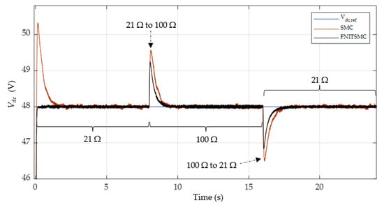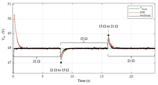 The fast nonsingular integral terminal sliding mode control (FNITSMC) can overcome these shortcomings of the standard SMC. It is also simpler to implement and demonstrates higher robustness to external disturbances and parametric uncertainties resulting from unmodeled loads and changes in plant dynamics. Therefore, it can reduce overshoot/undershoot and statistical errors. In addition, it also guarantees finite-time convergence by accelerating the rise time and settling time, along with high tracking accuracy [37,38].