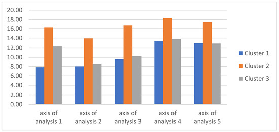 To contrast with the hypotheses that are initially raised, various statistical methodologies were used. A cluster analysis was carried out, similar to [46,60], which highlighted the five disclosure indices for each axis of analysis as variables.