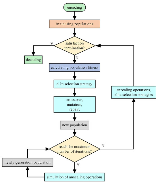 Based on the above analysis, the algorithm’s flow is shown in Figure 6, and the algorithm framework of the IGA is displayed in Algorithm 1.