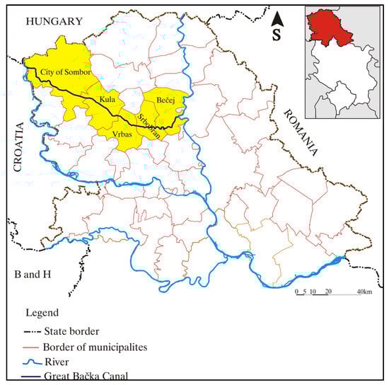 The subject of the study is the region of Central Bačka; more precisely, this study will focus on the region that is made up of the municipalities along the Great Bačka Canal (GBC) that connect its western and eastern parts. These include the territories of the City of Sombor and the municipality of Kula, which are part of the West Bačka District, as well as the municipalities of Vrbas, Srbobran, and Bečej, which belong to the South Bačka District.