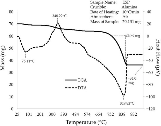 Thermogravimetric analysis and differential thermal analysis (TGA-DTA) graphs of the ESP.
