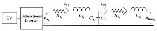 Figure 1 shows the configuration of the EV charger. EV chargers are assumed to be constructed with bidirectional inverters and their output connectors. Note that the DC-side dynamics are neglected for simplicity. The dynamics of the EV charger connected to bus are modeled as follows: