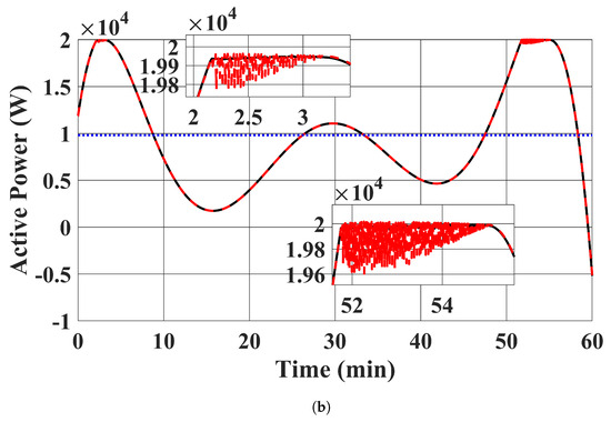 RESs’ MPPT profiles tracking performance of the proposed controller in case 1. (a) . (Black: MPPT profile; Red: case 1 proposed controller was used). (b) . (Black: MPPT profile; Red: case 1 proposed controller was used).