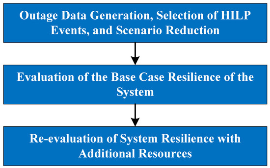 Utilizing graph theory modeling and the concept of connected components, the proposed framework establishes a strong analytical basis for evaluating and improving the resilience of transmission systems. This framework is structured into three primary stages, as depicted in Figure 2. The following subsections elaborate on each stage, detailing their aims, approaches, and contributions to a thorough grasp of the system’s resilience.