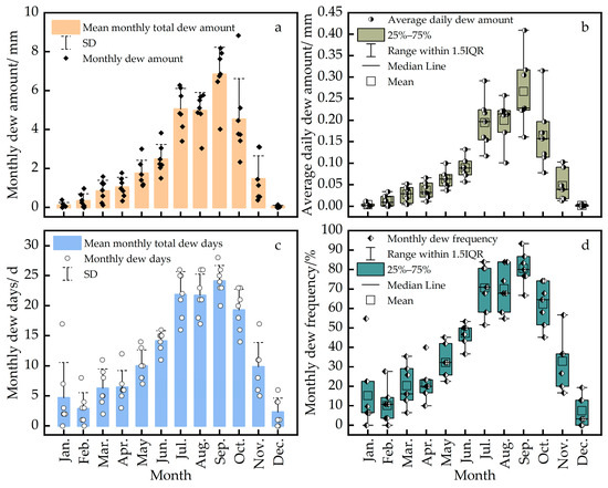 Chicago/Turabian StyleJia, Zhifeng, Yingjie Chang, Hao Liu, Ge Li, Zilong Guan, Xingchen Zhang, Ruru Xi, Pengcheng Liu, and Yu Liu. 2024. "Characteristics and Estimation of Dew in the Loess Hilly Region of Northern Shaanxi Province, China" Sustainability 16, no. 6: 2482. https://doi.org/10.3390/su16062482