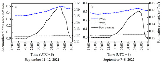 - Guo, X.; Wang, Y.; Yan, H.; Liu, P.; Tian, Y.; Shang, G.; Jin, C.; Zha, T. Dew/hoar frost on the canopies and underlying surfaces of two typical desert shrubs in Northwest China and their relevance to drought. J. Hydrol. 2022, 609, 127880. [Google Scholar] [CrossRef]