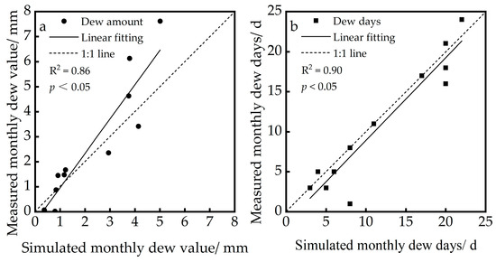 | Year–Month | Simulated Emi/mm | Measured Dmi/mm | NRMSD | Simulated Dew Days/d | Measured Dew Days/d |