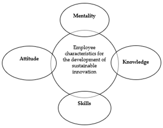 Figure 7 illustrates the characteristics that employees should have when implementing a sustainable innovation model.