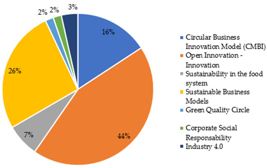 In this sense, it is important to highlight that, of the 62 articles found, 25 are related to open innovation or simply the implementation of innovation in the improvement of products or services that in a transversal way helps to reduce environmental impacts. Meanwhile, 15 studies emphasize business models that consider sustainability as their central axis, while 9 are related to sustainable innovation generated from the circular economy or circular business models. For example, Ref. [