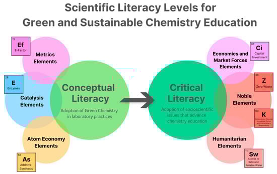 - Andrade, R.d.S.; Zuin, V.G. A Alfabetização Científica Em Química Verde e Sustentável [Scientific Literacy in Green and Sustainable Chemistry]. Educ. Química En. Punto De Vista 2023, 7, 1–15. [Google Scholar]