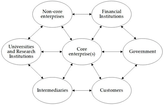 - Jiang, S.M.; Hu, Y.M.; Wang, Z.Y. Core firm based view on the mechanism of constructing an enterprise innovation ecosystem: A case study of Haier group. Sustainability 2019, 11, 3108. [Google Scholar] [CrossRef]