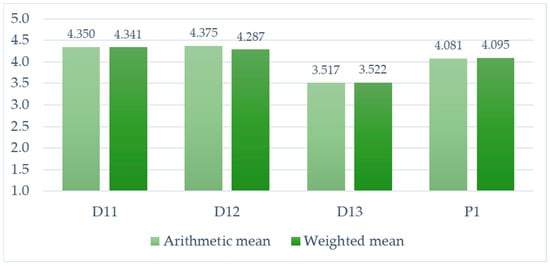 The weights calculated by the experts expressing the importance of a particular field or domain were averaged. Formula (1) was used for these calculations.