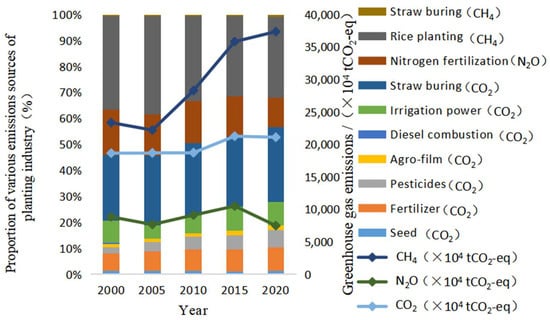 Greenhouse gas emission structure of planting industry in China, 2000–2020.