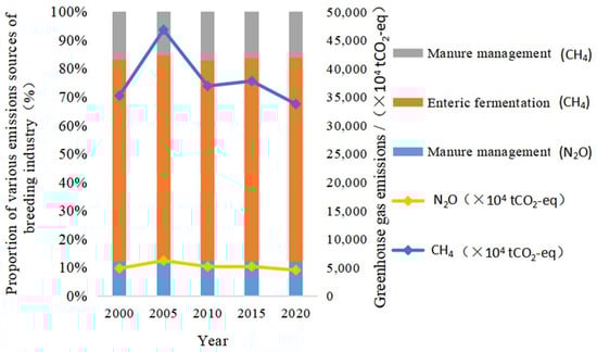 Greenhouse gas emission structure of livestock breeding industry in China, 2000–2020.