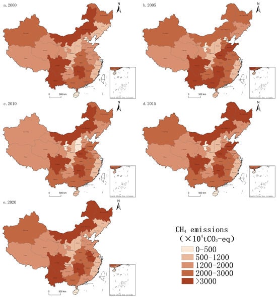 Spatial distribution of agricultural CH4 emissions in China, 2000–2020.