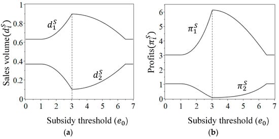 (a) The impact of the subsidy threshold on the firms’ sales volume; (b) the impact of the subsidy threshold on the firms’ profits.
