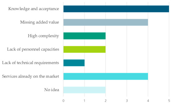 In question 5, the interviewees were asked to provide an assessment of the current low prevalence of service-oriented and data-driven business models. An aggregated overview is shown in Figure 3 below (multiple answers were permitted).