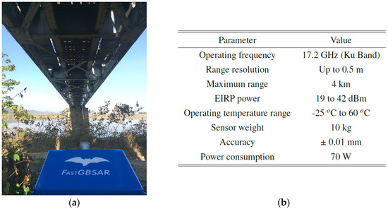 (a) Polarimetric GB-RAR system placed beneath the bridge. (b) GB-RAR system parameters.