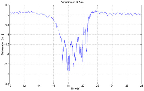 Vibration deformation during train passing located at 14.5 m.