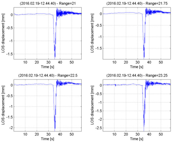 Temporal profiles of LOS displacements at different ranges.